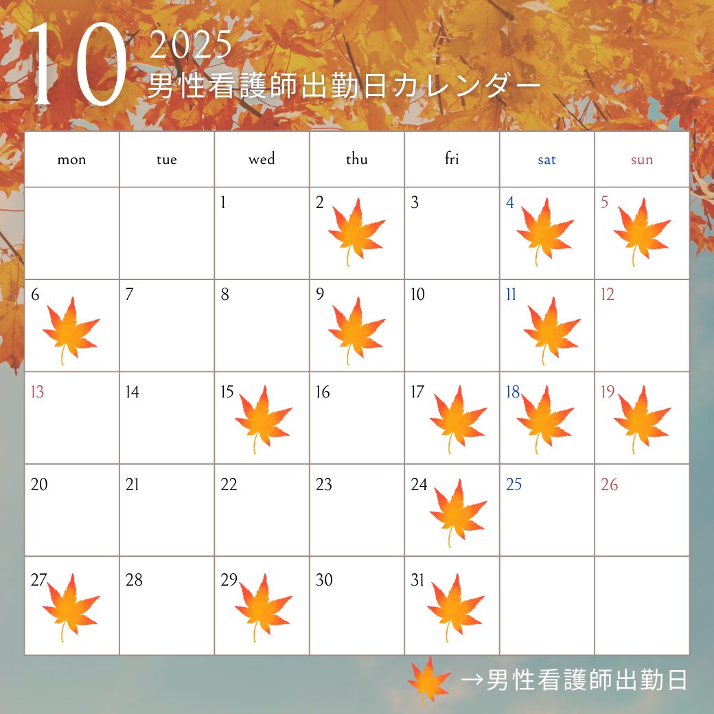 🍁10月の男性看護師の出勤日カレンダー🍁